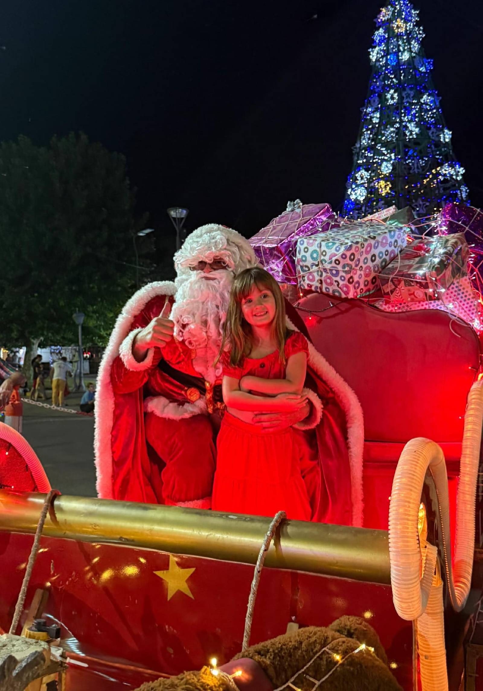Previo a su arribo al Centro Cívico, el trineo de Papá Noel recorrió distintos puntos de la ciudad, permitiendo que toda la comunidad pudiera ser parte de la magia y anticipar una noche especial.